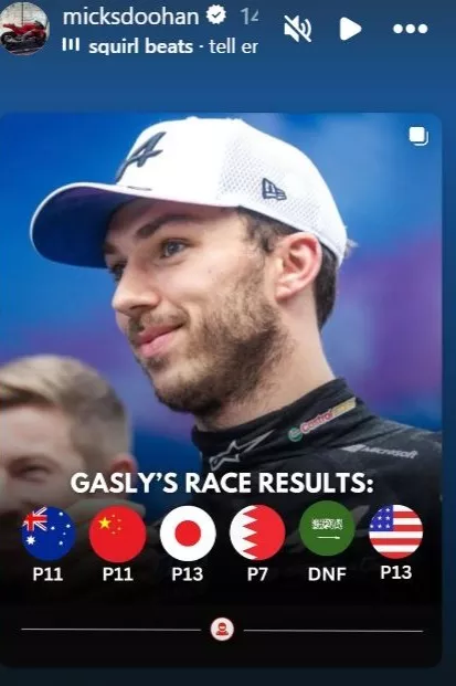 La leyenda de las motos publicó dos stories donde se pueden ver los resultados de Gasly y de Jack Doohan hasta ahora en la temporada, sin agregar nada más que la canción ‘tell em’ de squirl beats. Posiblemente haya querido señalar que los resultados del francés no han sido espectaculares hasta ahora en el año, aunque la realidad indica que estuvo siempre por delante de su compañero de equipo.