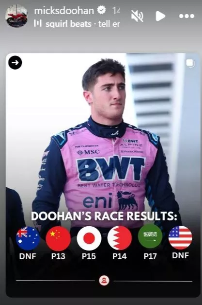 A lo largo de los seis grandes premios disputados en 2025, Doohan tuvo un déficit promedio en clasificación de 0s367 respecto a Gasly, mientras que nunca terminó una carrera por delante del francés, excepto cuando este fue descalificado en China.