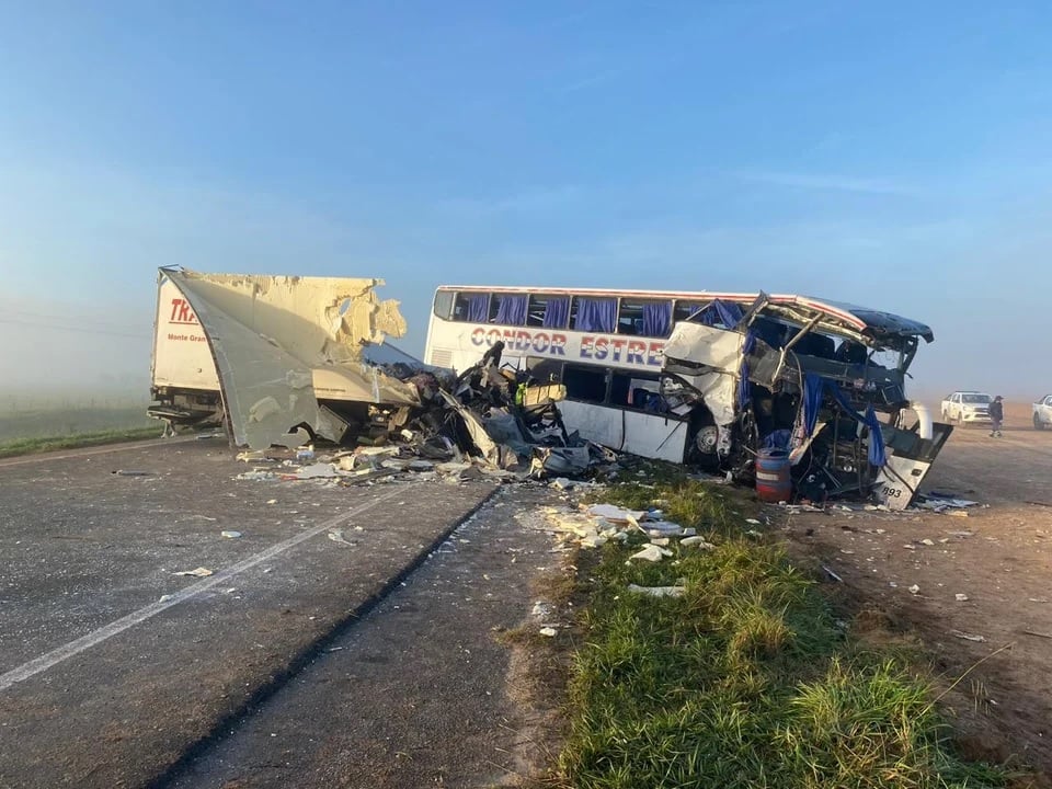 Las primeras informaciones señalan que el micro se dirigía hacía Buenos Aires y chocó de frente contra el camión que iba en sentido contrario.