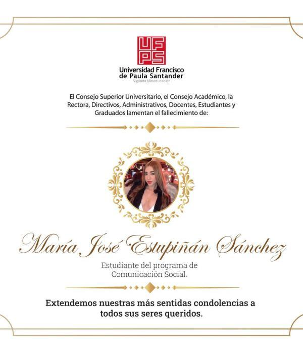 María José Estupiñán tenía 22 años y era estudiante de séptimo semestre del programa de Comunicación Social de la Universidad Francisco de Paula Santander.