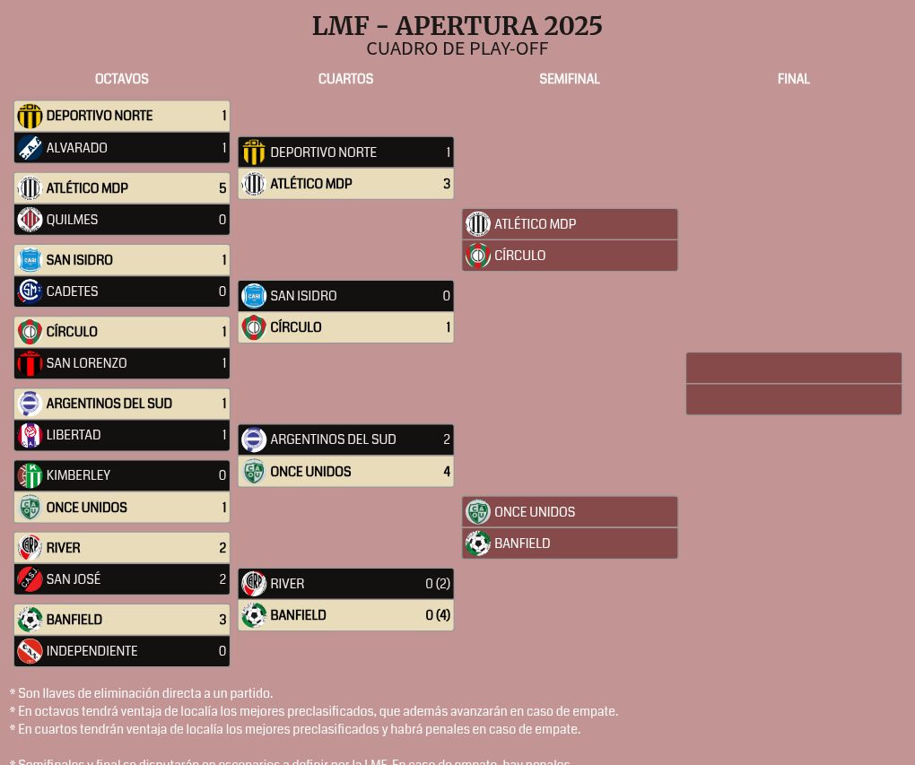 Lucas Manfredi marcó el tanto de la clasificación sobre el final del primer tiempo. Antes, Emiliano Cingolani había anulado una conquista de Thomas Carrique por una supuesta falta previa. El equipo de Parque Luro tuvo dos chances claras para liquidarlo en el complemento, pero en el tramo final terminó apremiado. Gabriel Barucco tuvo tres atajadas determinantes durante el partido.